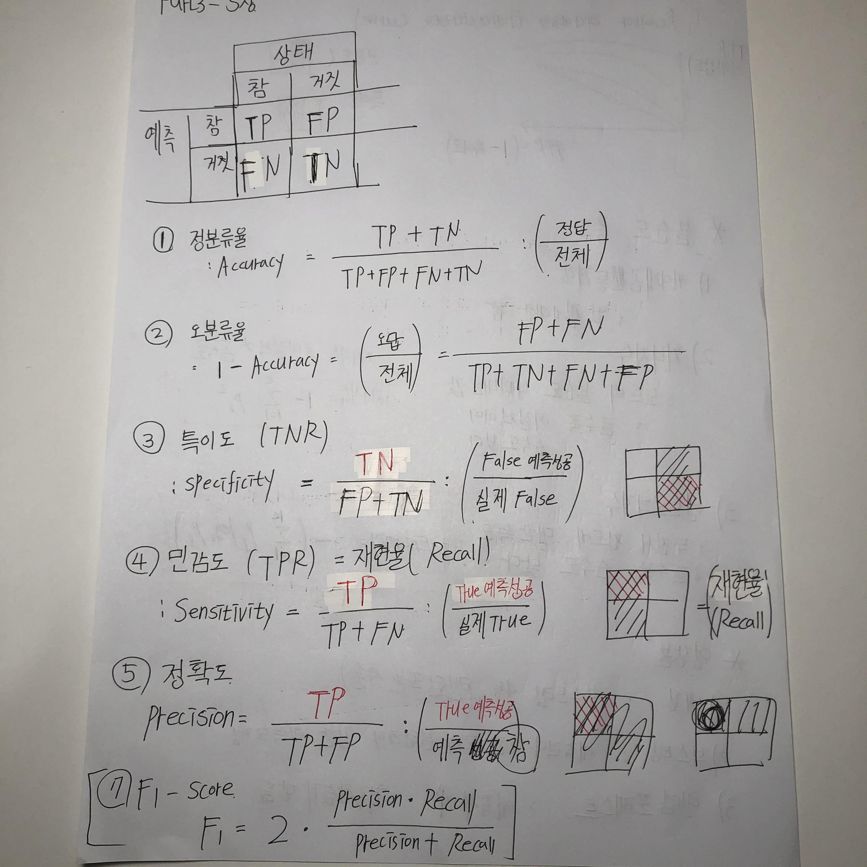 저는 하나하나 TP FN 등을 외워서 하기에는 비효율적이라고 판단해서 matrix를 만들어서 외웠습니다.