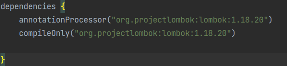 이렇게 annotationProcessor와 compileOnly 뒤에 : 버전 1.18.20을 추가하여 해결 할 수 있었습니다!