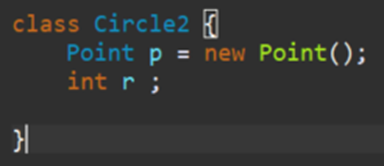 하지만 Circle2 클래스에서는 Point를 멤버변수로 선언하여 포함관계를 맺고 새로운 멤버변수 int r만 추가하였다.