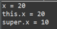 super.x는 조상 클래스로부터 상속받은 멤버변수 x를 뜻하며,