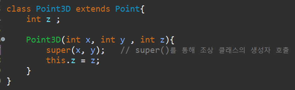 이후 자손 클래스에서 super()를 통해 해당 생성자를 호출함으로써 사용한다.