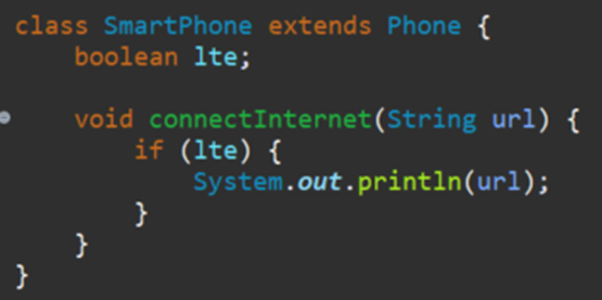 자식 클래스인 SmartPhone 클래스는 부모 클래스인 Phone 클래스의 멤버변수를 사용할 수 있다.