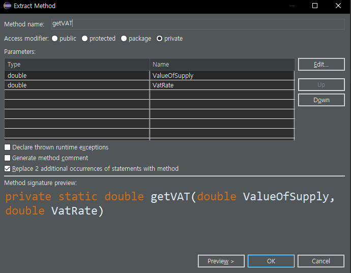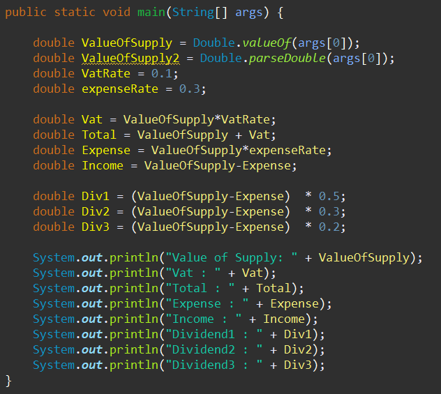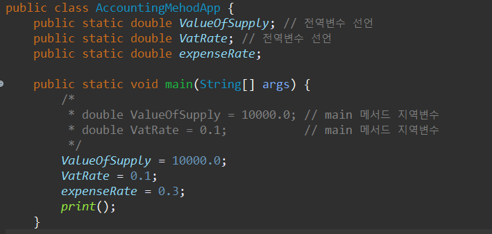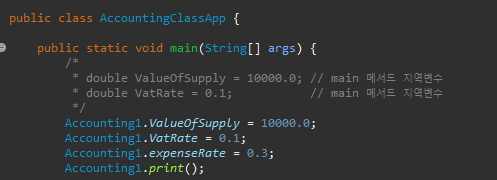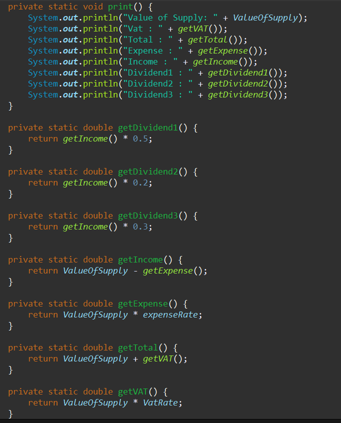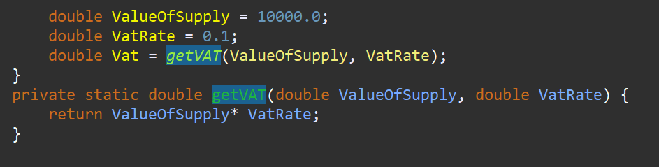 getVAT( valueOfSupply, VatRate ) 메서드 안의 valueOfSupply, VatRate는 입력 변수이다.