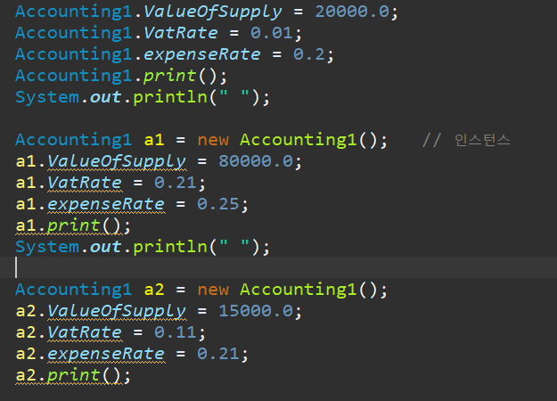 ● 인스턴수 메서드를 사용하기 위해서는 객체 생성 후 인스턴스 변수 사용 가능