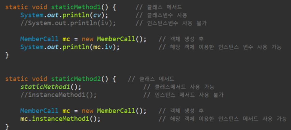 반대로 인스턴스 메서드는 사용할 수 없다.