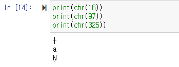 - 예를 들어, chr(97) 은 문자열 'a' 를 돌려주고,