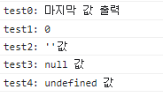 const test0 = 0 || "" || null || undefined || "마지막 값 출력";