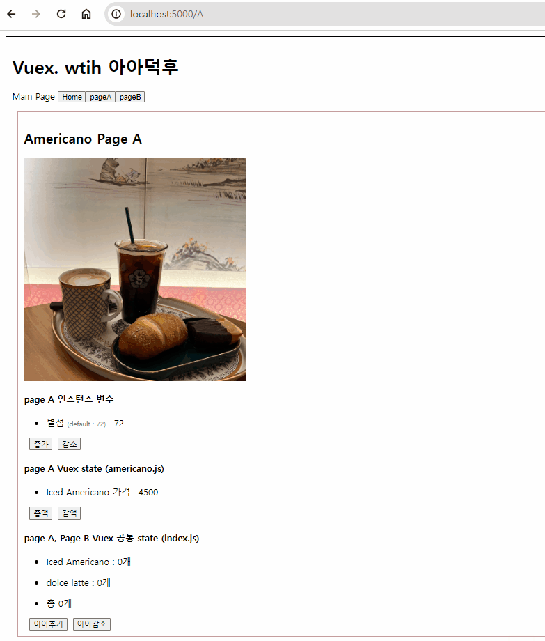 page A 아메리카노 바리스타 조회 (Vuex actions 통신) (americano.js)