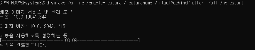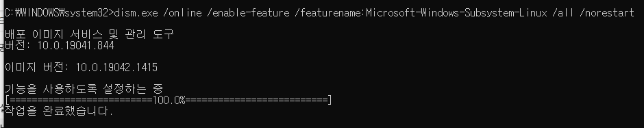 CMD 관리자 권한으로 실행 후 위 코드 복붙하면 다음과 같이 완료됩니다!