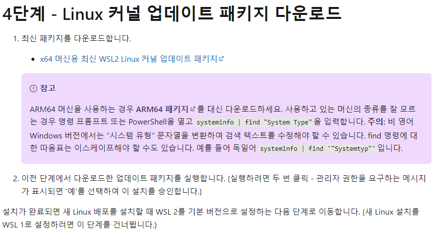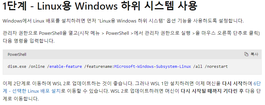 wsl install 명령을 사용하지 않고 이전 버전의 Windows에 WSL을 수동으로 설치하는 방법에 대한 단계별 지침입니다.