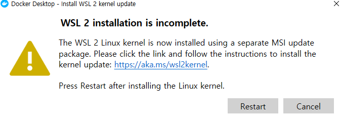 위 링크 (docs.docker.com) 에서 windows desktop 버젼 다운로드 후 실행 했더니 다음과 같은 오류가 발생했습니다.