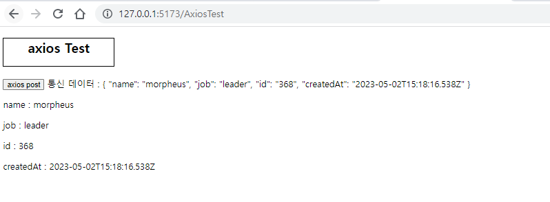 axios를 이용한 Get 데이터 출력 화면은 다음과 같습니다.