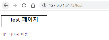 해당 페이지 이동 버튼 클릭 시, test 페이지로 이동하는 router 함수를 실행시켜 url이 변경됨과 동시에 컴포넌트도 변경됩니다.