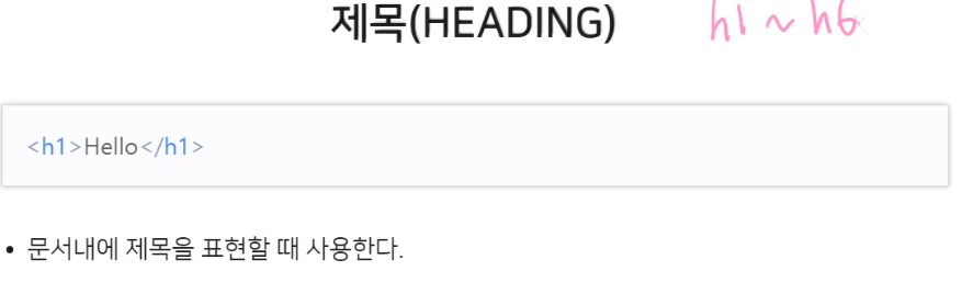 h1: 문서내에 제목을 표현할 때 사용한다.