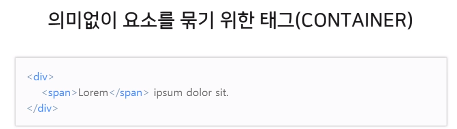 컨테이너 태그는 특별한 의미없이 다른 목적으로 필요할 때 사용하는 태그이다.