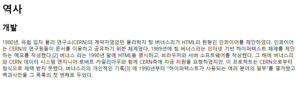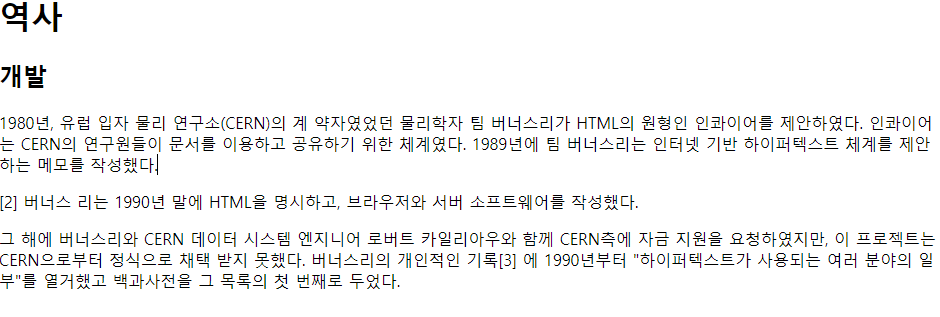 <p> [2] 버너스 리는 1990년 말에 HTML을 명시하고, 브라우저와 서버 소프트웨어를 작성했다. </p>