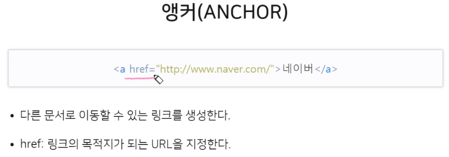 a 태그는 하이퍼링크를 넣어주는 태그이므로 꼭 href 속성을 가져야 한다.